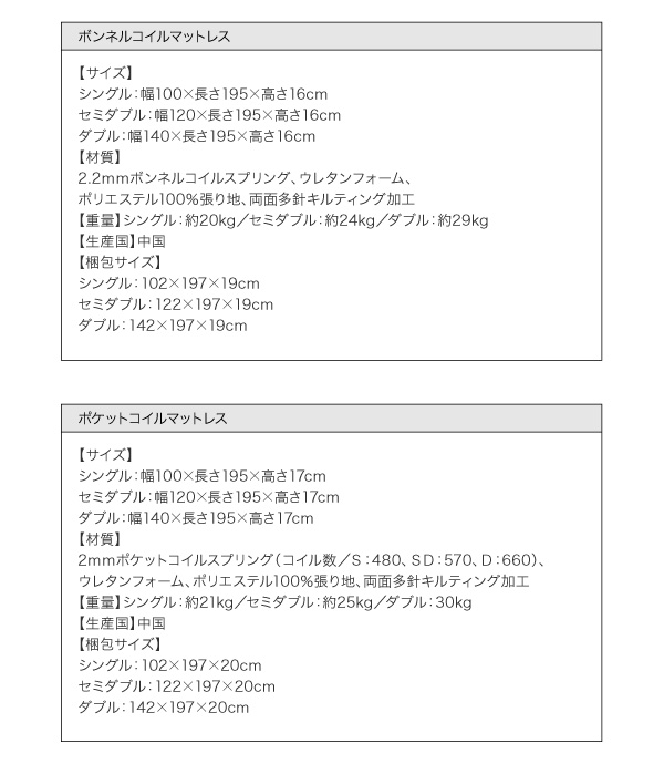 【ボンネルコイルマットレス&ポケットコイルマットレス&国産ポケットコイルマットレス】