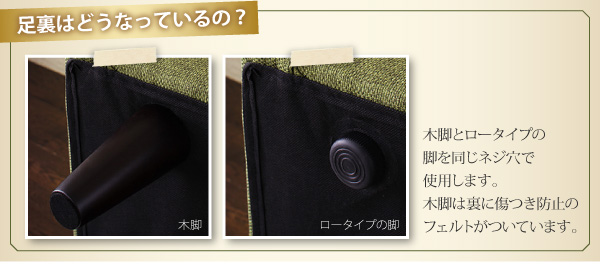 木脚とロータイプの脚を同じネジ穴で使用します。