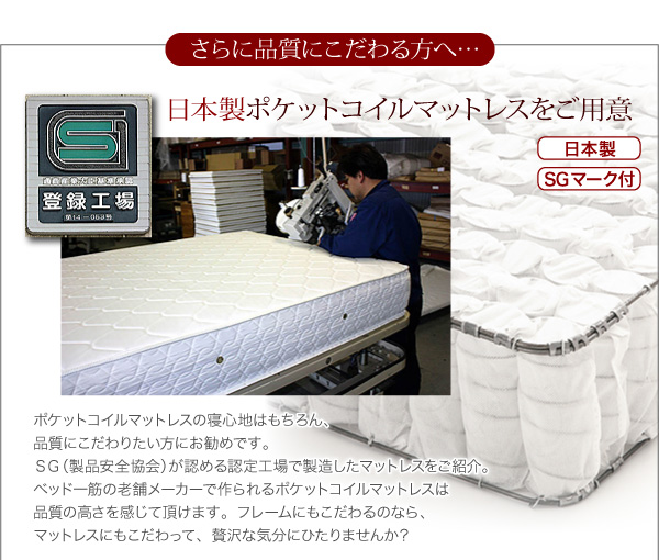 SGマーク付・日本製ポケットコイルマットレスをご用意