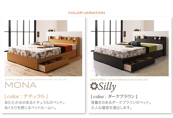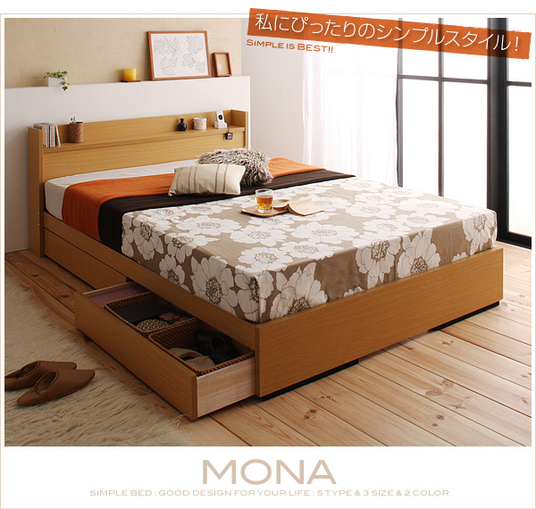 2杯の引き出し付きでベッド下を有効活用。収納はいくらあっても嬉しい機能です。かさばるリネン類や、CD、雑誌類などを収納して、いつでも綺麗な寝室を目指しましょう。