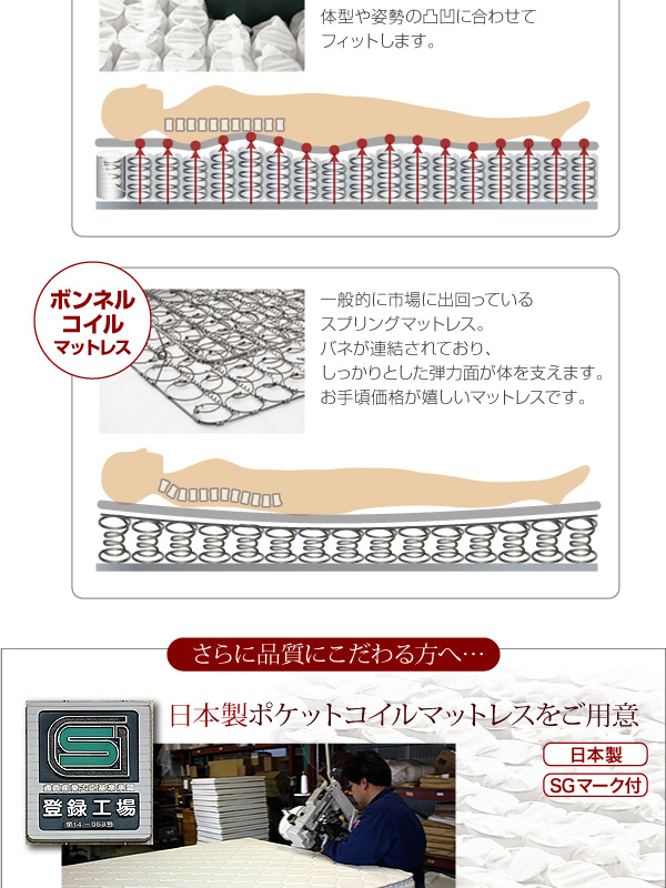 SGマーク付・日本製ポケットコイルマットレスをご用意