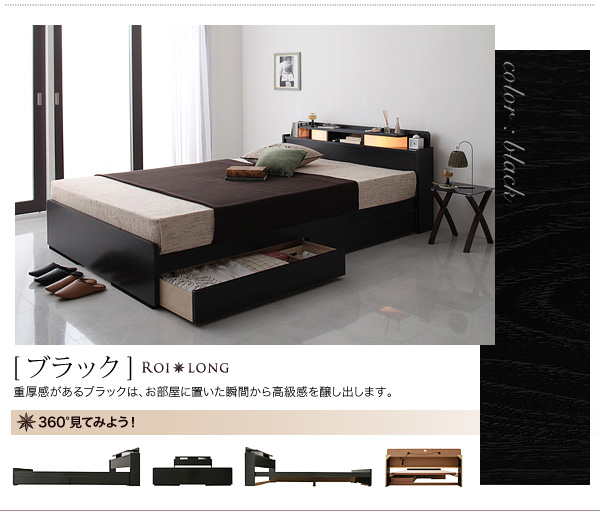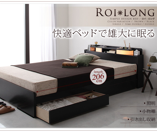 • 棚・照明付き収納ベッド【Roi-long】ロイ・ロング【ポケットコイルマットレス付き】