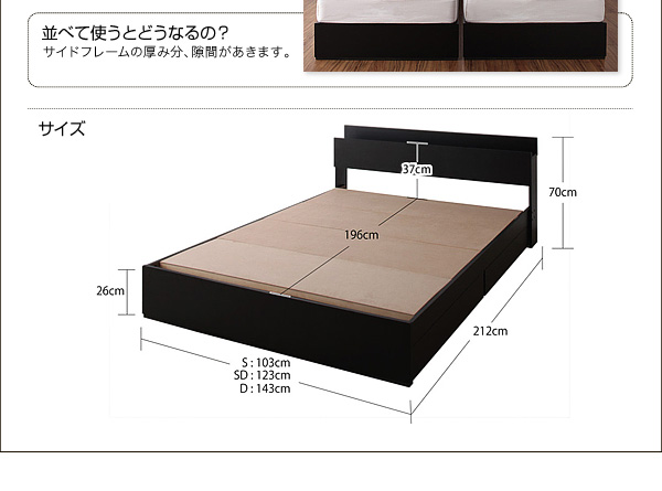 注意※ベッドのフレームはスプリングマットレス使用時の基準で強度計算されております。そのため、床板に直接布団等を敷いてご利用になりますと破損の原因となる場合があり、大変危険です。こちらの商品のフレームをご使用になる場合は、床板の上に必ずスプリングマットレスをしいてご利用くださいますよう、お願い申し上げます。