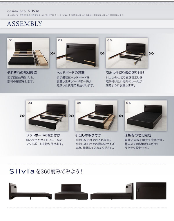 ・お部屋のスペースを取ってしまうベッドだからこそ、有効活用したい。引出し2杯分の収納力が増えてお部屋も広々使うことが出来ます。また引出しは左右引き出す方向が選べます。