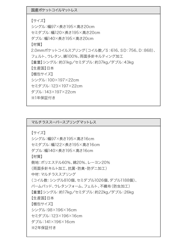 【ボンネルコイルマットレス&ポケットコイルマットレス&国産ポケットコイルマットレス】