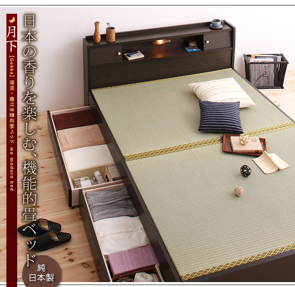 い草の香りが日本人の心を和ませる畳ベッド。吸湿性や保湿性に優れた畳で快適に眠る。