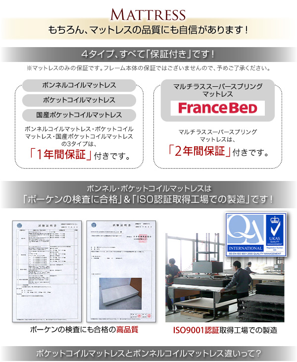 【ボンネルコイルマットレス&ポケットコイルマットレス&国産ポケットコイルマットレス】