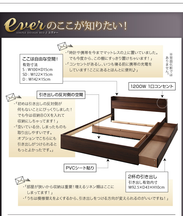 ベッド下は2杯の引き出し付き。左右どちらでも付けられます。