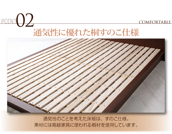 通気性のことを考えた床板は、すのこ仕様。素材には高級家具に使われる桐材を使用しています。