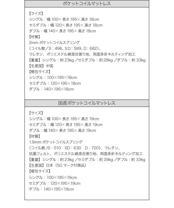 SGマーク付・日本製ポケットコイルマットレスをご用意