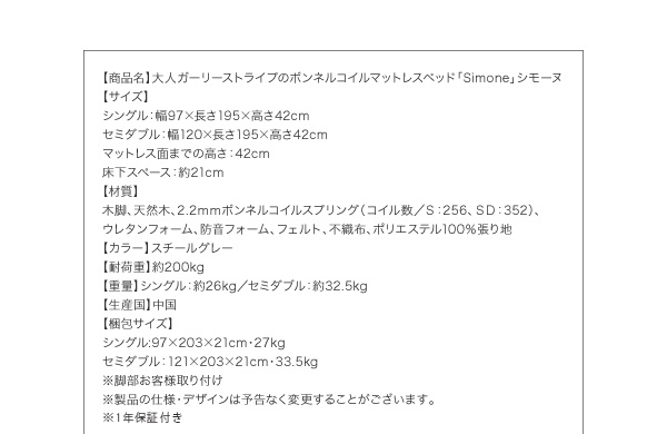 【重量】シングル:約26kg/セミダブル:約32.5kg