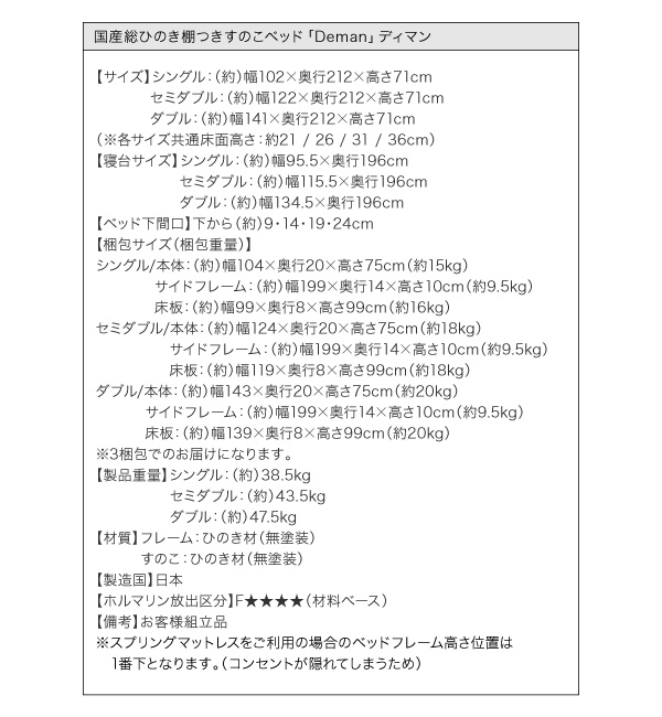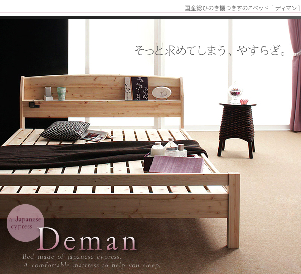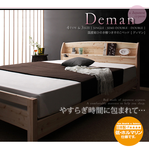 国産総ひのき棚つきすのこベッド ディマン