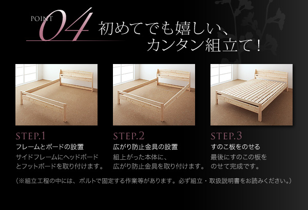 (※組立工程の中には、ボルトで固定する作業等があります。必ず組立・取扱説明書をお読みください。)
