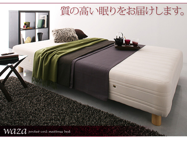 スプリングが一つ一つ不織布のポケット(袋)で包まれ独立しているため、体圧分散に優れ、体型や姿勢の凸凹に合わせてフィットします。さらにWazaのポケットコイルは交互に配列することでより体圧をより細かく分散します。面ではなく、点で支える構造なので、横揺れが軽減され、振動で隣の人を起こす心配なく熟睡できます。