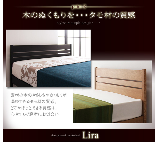 素材の木のやさしさやぬくもりが満喫できるタモ材の質感。どこかほっとできる質感は、心やすらぐ寝室にお似合い。