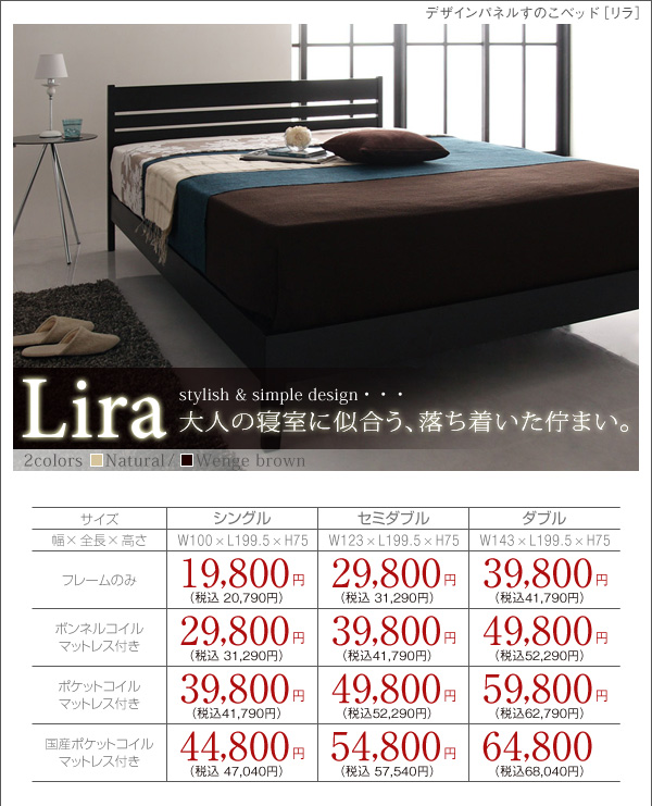 シングル:39800円(税込41790)、セミダブル:49800円(税込52290)、ダブル:59800円(税込62790)
